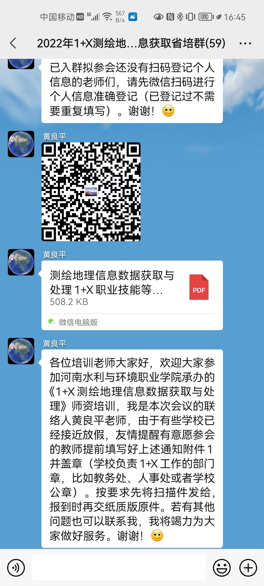6月25日,河南省1+X测绘地理信息数据获取与处理职业技能等级证书师资培训班微信群组建完成,来自全省各地的50名参培教师陆续加入,相聚在一起。