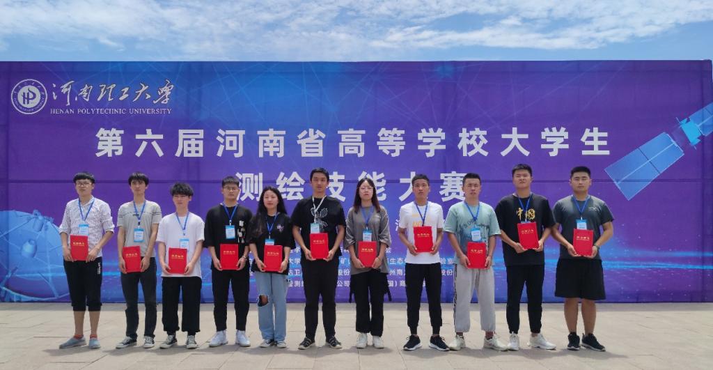 6月18日-20日,第六届河南省高等学校大学生测绘技能大赛在河南理工大学举行。我校代表队获得团体总成绩(高职组)一等奖、四等水准测量(高职组)特等奖、1:500数字地形图测绘(高职组)一等奖、卡西欧计算器编程(高职组)二等奖、虚拟仿真数字测图(高职组)一个一等奖和一个二等奖的优异成绩。