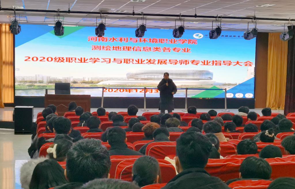 12月31号上午,我系在航空港校区德礼讲堂举行2021测绘技能竞赛动员暨2020级职业学习与职业发展导师专业指导大会。我系文琳书记、测量教研室全体教师及测量、测工、测信、地测、摄测的全体20级新生参加本次大会。