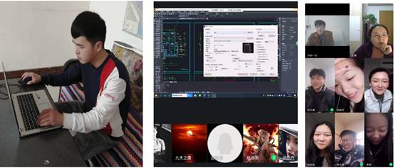 图4 学生在家中绘图 图5 师生视频交流
