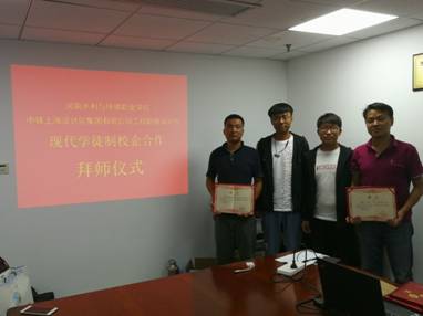 开班仪式结束后,举行了传统而又别开生面的拜师仪式,聘请中铁上海设计院集团有限公司工程勘察设计院5位工程师为学生的企业师傅。本次拜师仪式将传统拜师礼与现代学徒制相结合,展现了在现代学徒制条件下高职院校师生之间从“师生”到“师徒”的关系转变以及学生从“学校人”到“社会人”的身份转变。