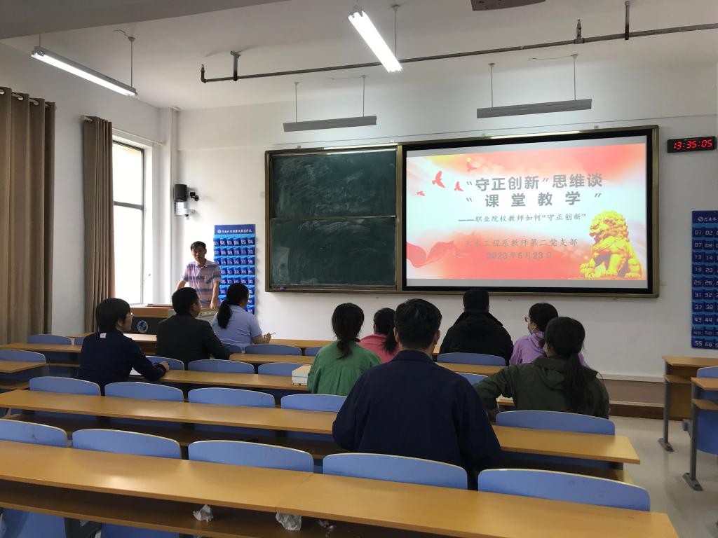 系教师第二党支部书记张新盈以《“守正创新”思维谈课堂教学》为题,为支部全体党员讲授专题党课。