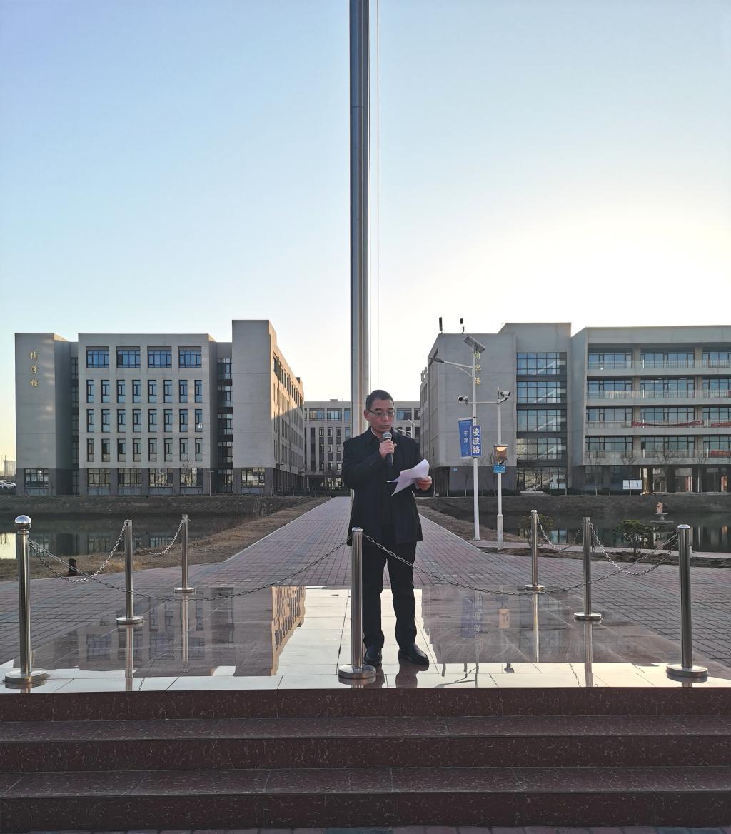2月20日,土木工程系在航空港校区举行升旗仪式,系党总支书记文琳、全体学管老师及在校生参加。