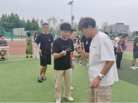 第三部分为“粽子接力”和“夹红豆”两个趣味活动,参与“粽子接力”的同学需要通过转盘抽取工具盲盒,并利用抽取的工具在规定时间内运送粽子,在限定时间内运送的粽子数量多者胜出。“夹红豆”需要同学们用筷子将红豆从盛有糯米、红豆的容器中夹出。活动现场充满欢声笑语,洋溢着节日的欢乐氛围。