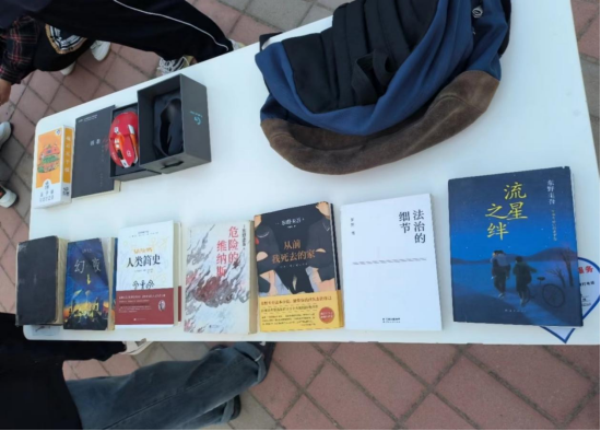 学生志愿者们根据线上报名信息汇集、整理了市集活动的闲置物品清单,认真组织筹备本次活动。活动现场设置爱心捐赠角、买卖角和置换角,“摊主”们在志愿者的引导下在各自的摊位有序布置现场,涉及的物品种类繁多,有闲置的文具、耳机、鼠标、书籍,也有自制的精美手工品、糖果盲盒、DIY手机壳,大家可通过买卖、置换的形式选择自己心仪的物品。同时,在爱心捐赠角,同学们积极捐赠图书、文体、衣服等闲置物品,经志愿者消毒、筛选后,所有物品可供有需要的人自行领取。