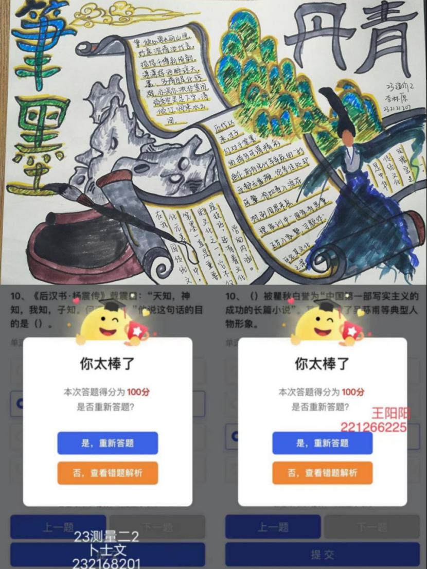 本次系列活动分为“国学史园”知识竞答、“水墨校园”绘画联播和专题讲座三项活动内容。“国学史园”知识竞答以线上形式开展,竞答题目涵盖国学知识、文化历史、传统典籍等内容,土木工程系全体师生参与答题,多名师生获得满分的好成绩;“水墨校园”绘画联播活动共收集到50副作品,参赛同学以书法、诗词曲赋、祖国河山等为素材,综合运用宋体、楷体、毛笔字、彩绘等形式创作出一幅幅水墨作品;系列活动以专题讲座结尾,文琳运用鲜活案例,从哲思理论、文学艺术、民风习俗等方面深入浅出地介绍了中华优秀传统文化的价值内涵。