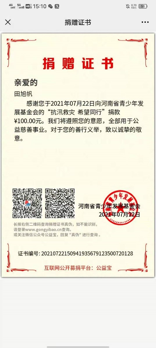 为响应上级团组织“为遭受洪灾的学生办实事”的号召,帮助深陷洪灾的受灾群众,点燃“希望”的明灯。7月22日,土木工程系团总支举办“希望在身边”募捐活动,活动在各个班级群同时开展,土木工程系百余名师生参加了本次活动。