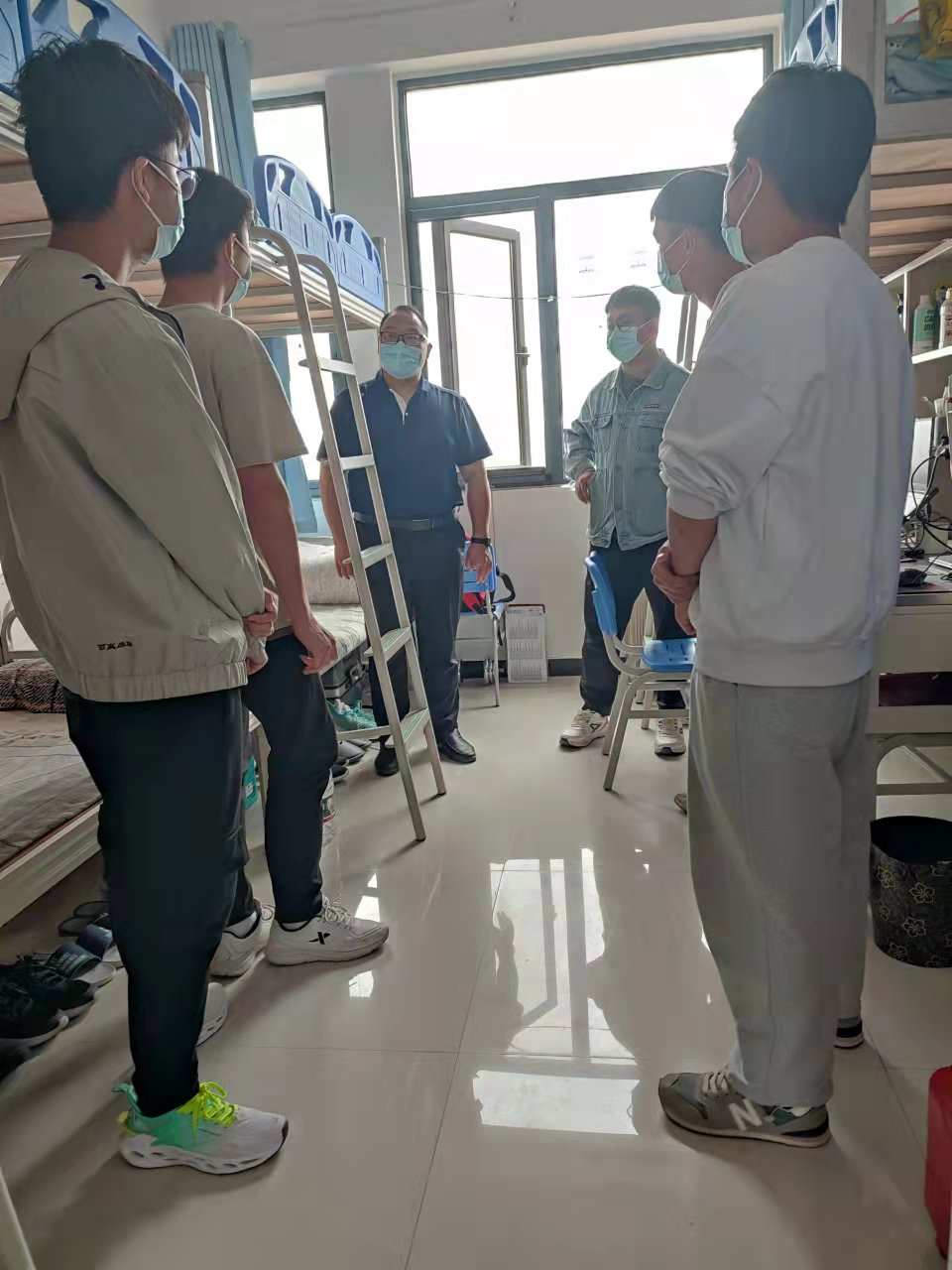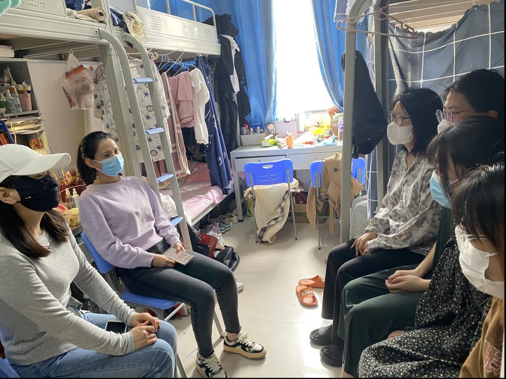 为精准掌握学生的学习、生活及思想状况、系留校辅导员和班主任老师们深入学生宿舍,与学生亲切交流,叮嘱学生要听从学校安排,戴好口罩,严格执行疫情防控期间相关制度,注意保持良好的宿舍卫生,定期通风,劳逸结合,在学习之余坚持体育锻炼,养成良好的作息习惯,按时上课,确保线上线下课程学有成效。