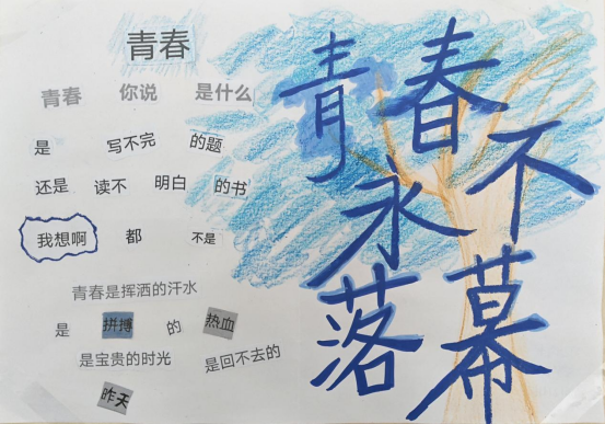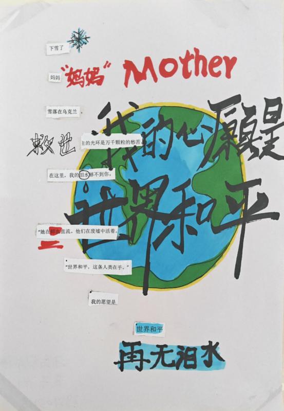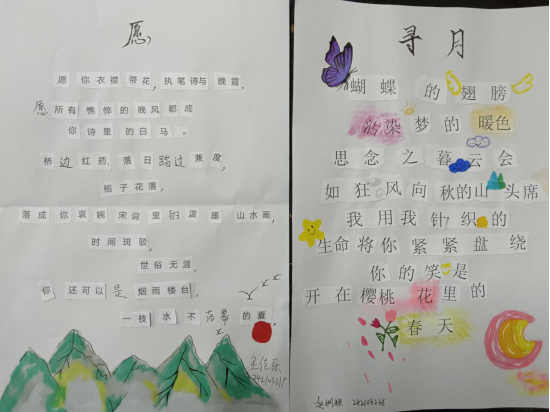 活动伊始,同学们通过自由联想选定与自身情感相契合的关键词,从杂志、报纸、书刊上寻找与关键词相关的色彩图像、文字等素材,通过裁剪、拼贴、手绘等技巧,发挥想象力,创作出融合真情实感的拼贴诗作品。
