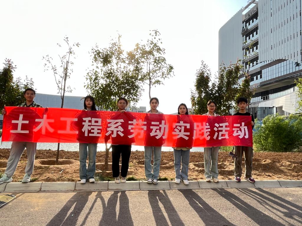 4月26日,土木工程系开展劳动实践活动,组织学生在校内种植蔬菜。