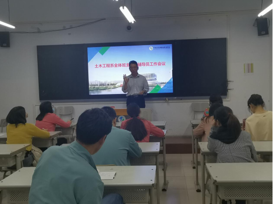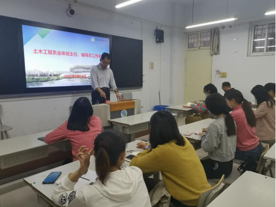 为进一步做好本学期学生管理工作,完善学生管理秩序,5月16日,土木工程系在南教201召开“学生工作会议”,此次会议由党总支书记文琳主讲,全体班主任、辅导员参加此次会议。