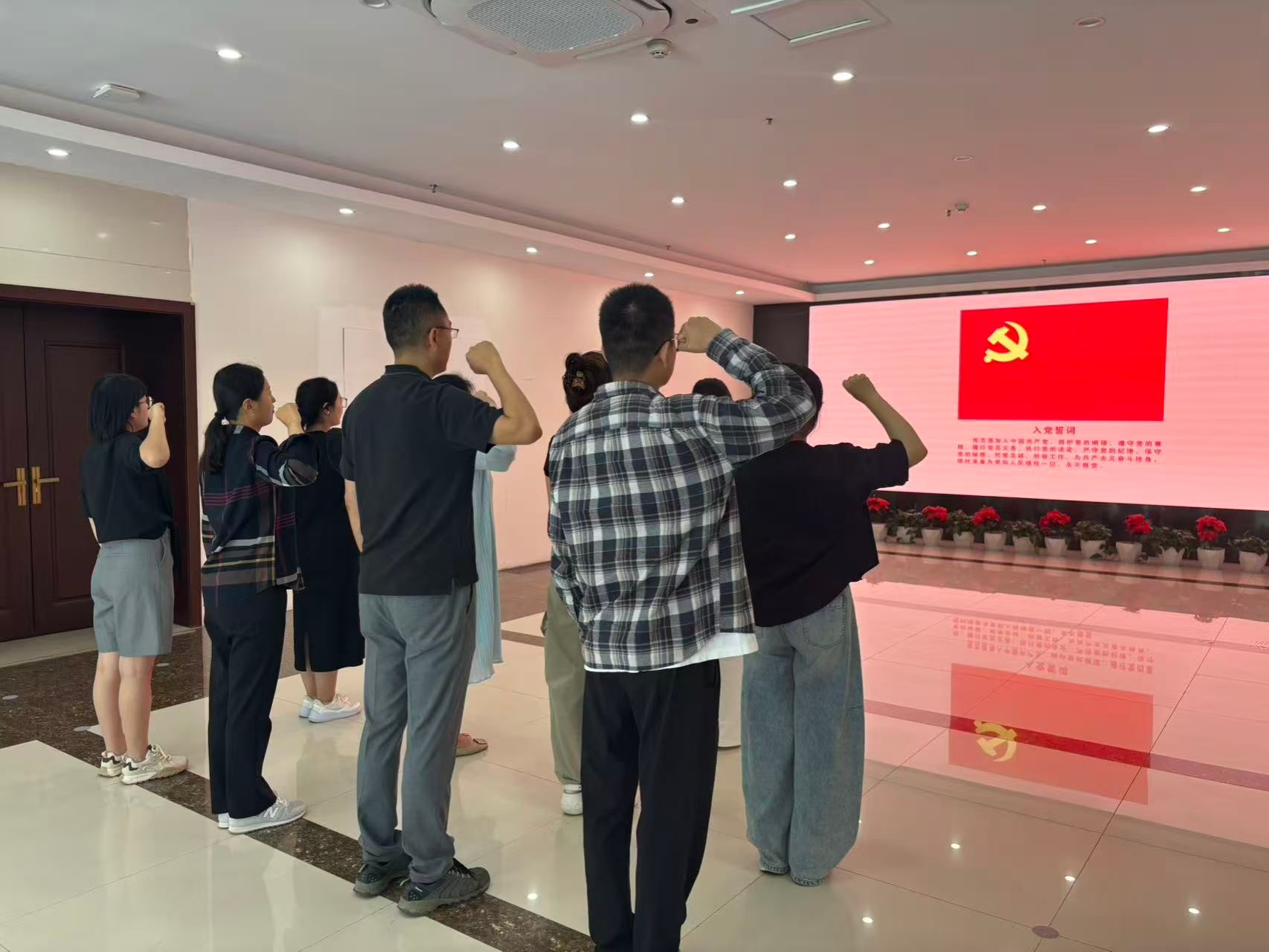 在党史馆的党旗前,911爆料入口党总支书记李文君同志带领党员老师重温入党誓词。铮铮誓言让老师们更能增强历史认同感,体悟到红色精神的时代内涵,有效激发了大家的爱国情怀与责任担当,进一步坚定了理想信念。