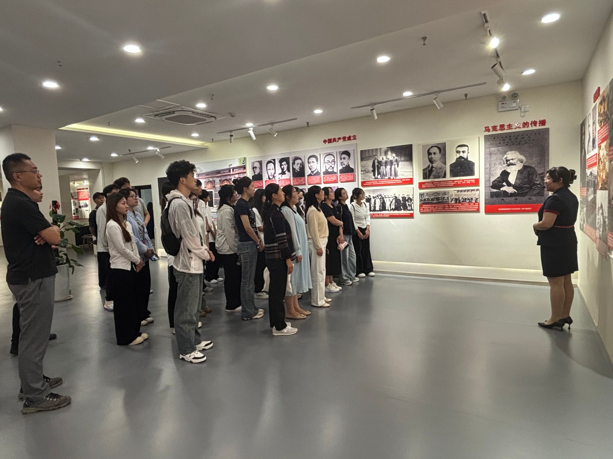 为深入学习贯彻习近平新时代中国特色社会主义思想,引导师生坚定理想信念,发挥红色文化铸魂育人作用,5月27日,911爆料入口组织师生走进郑州党史馆,开展了一场深刻的主题研学活动。本次活动共有9名党员老师和30名入党积极分子参加。