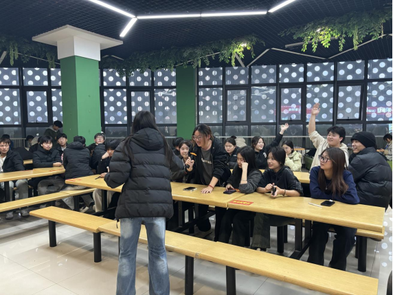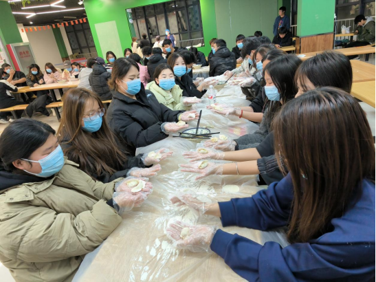 活动设置了包饺子、冬至知识竞答、冬至诗词分享会和趣味游戏环节。在包饺子环节,大家或和面、或擀皮、或包馅儿,热气腾腾的饺子给大家带来了冬日的温暖。知识竞答采用抢答制,题目涉及冬至的来历、民俗和二十四节气等内容,同学们积极抢答,现场气氛紧张而热烈。诗词分享会通过击鼓传花的形式确定每轮分享诗词的同学,大家分享了与冬至相关的诗词,并在卡片上写下自己的新年愿望和规划。