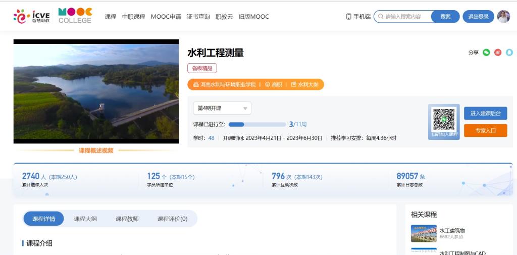 杜志刚技术技能大师工作室联合申报了2021年河南省继续教育精品在线开放课程—《水利工程测量》,课程在智慧职教慕课学院上线,已开课四期,累计学员2700余人,选课院校百余所。