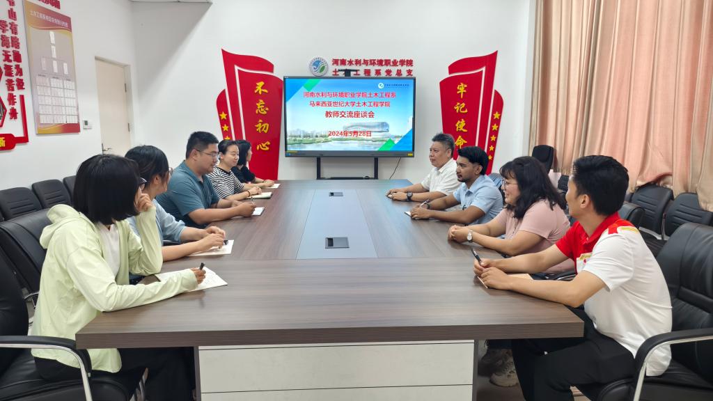 5月28日,土木工程系举办与马来西亚世纪大学教师交流座谈会。土木工程系各专业教师代表和马来西亚世纪大学教师Fazrul和Choo Chee Ming围绕合作内容进行了深入交流。