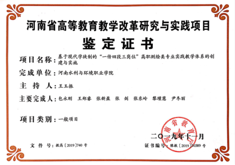 根据河南省教育厅《关于开展河南省高等教育教学改革研究与实践项目鉴定工作的通知》(教高〔2019〕387号)要求,各高校高度重视,经学校鉴定、教育厅复评、结果公示,608项高等教育教学改革研究项目通过省级鉴定。由我系王玉振主持,包永刚、王郑睿、张新盈、张剑、张东岭、黎瑾慧、尹冬丽教师参与的《基于现代学徒制的“一传四段三岗位”高职测绘类专业实践教学体系的创建与实施》项目顺利通过教改项目鉴定。这是我系进教育教学改革不断创新、教学质量水平不断提高取得的成果。我系将以此为契机,全面贯彻落实全国、全省教育大会精神,深化教育教学改革,推进素质教育,创新教育方法,认真分析项目鉴定过程中发现的新情况和新问题,进一步完善总结项目研究成果,加强成果的应用、交流和推广,探索形成教育教学改革新亮点,发挥引领示范作用,切实提高教学水平和人才培养质量。