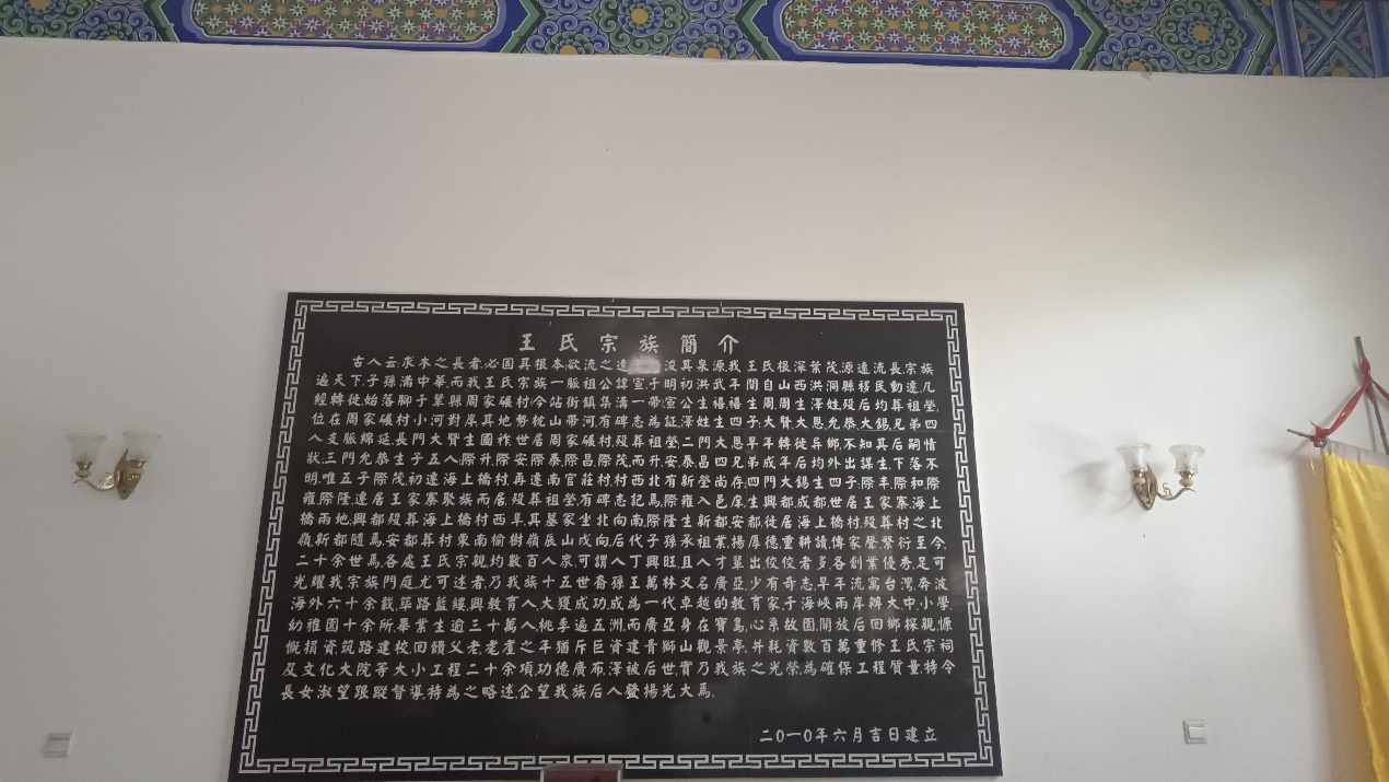 海上桥村王家祠堂位于海上桥村村西偏北处,始建于清代中期,坐西向东,总面积256平方米,建筑面积139平方米。现存倒座大房1座,南厢房1间,窑洞3孔。院内中间窑洞有王家始祖碑一通,清同治五年清明节立。建于清代。王家祠堂现为海上桥供销合作社。